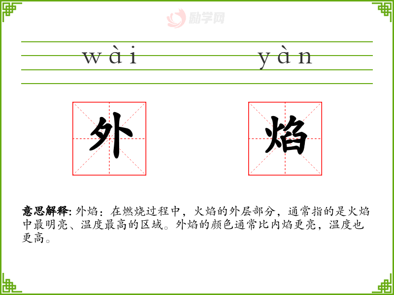 1.外焰的拼音是什么?外焰怎么读?