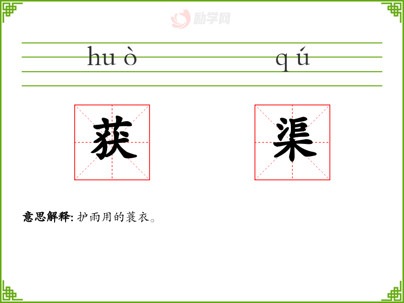 获渠的意思是:护雨用的蓑衣。