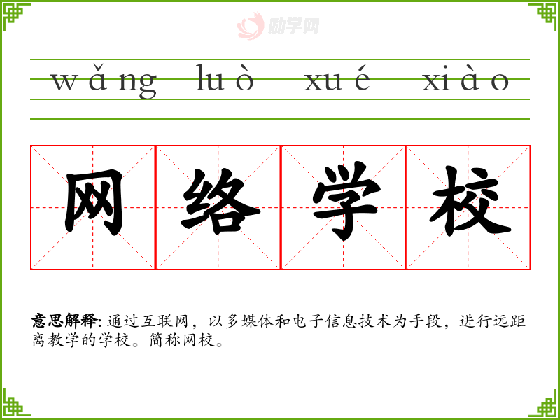 网络学校的意思是:通过互联网,以多媒体和电子信息技术为手段,进行远距离教学的学校。简称网校。
