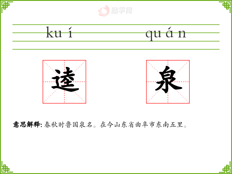 逵泉的意思是:春秋时鲁国泉名。在今山东省曲阜市东南五里。
