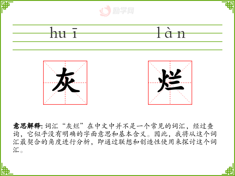 尽管“灰烂”不是一个标准词汇,但通过联想和创造性使用,我们可以赋予它一定的意义和情感色彩。在语言学习和表达中,这种创造性的思维是非常重要的,它可以帮助我们更好地理解和运用语言。
