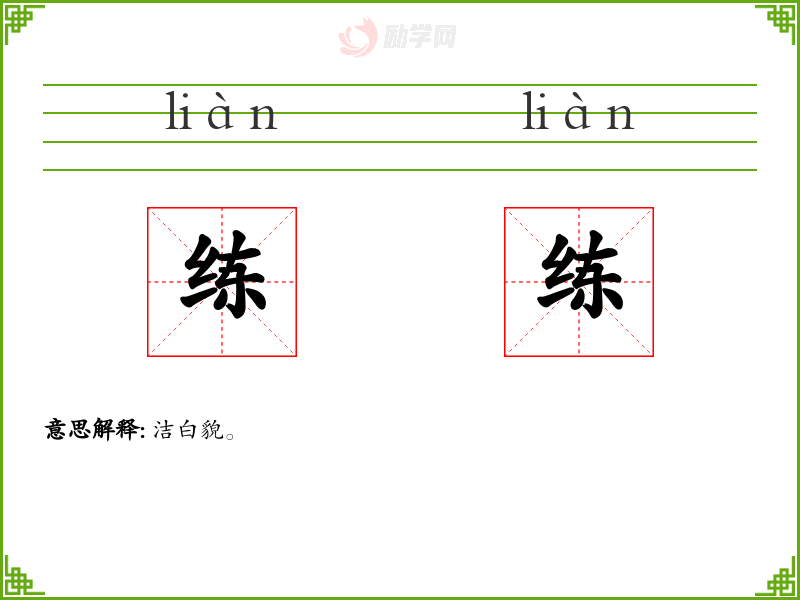 练练的意思是:洁白貌。