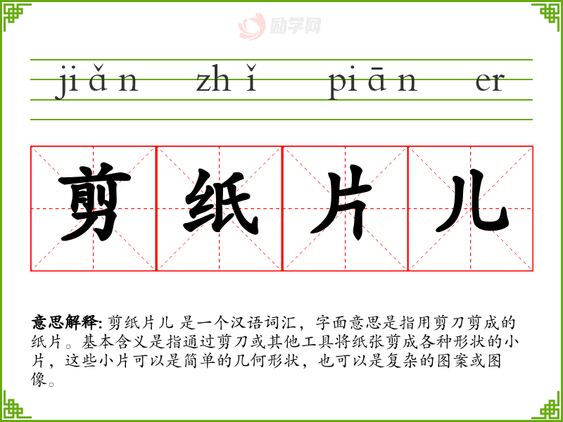 1.剪纸片儿的拼音是什么?剪纸片儿怎么读?