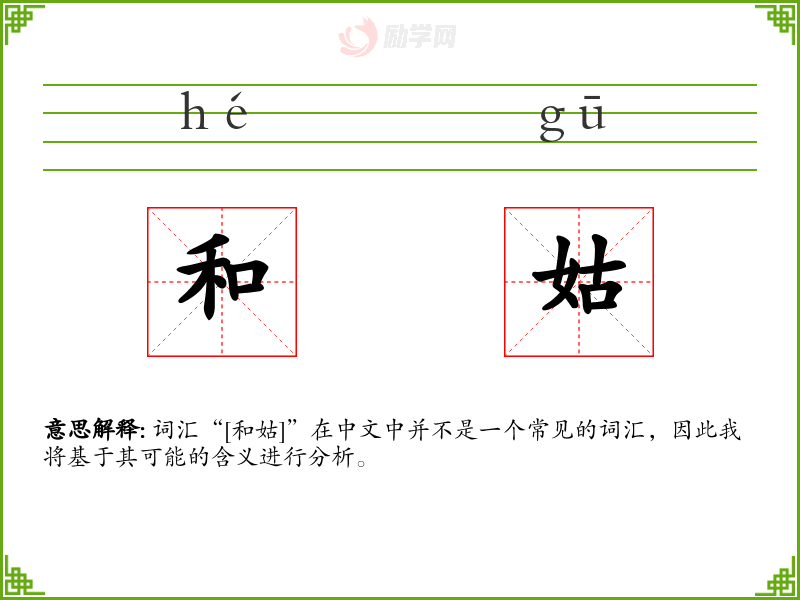 词汇“[和姑]”在中文中并不是一个常见的词汇,因此我将基于其可能的含义进行分析。