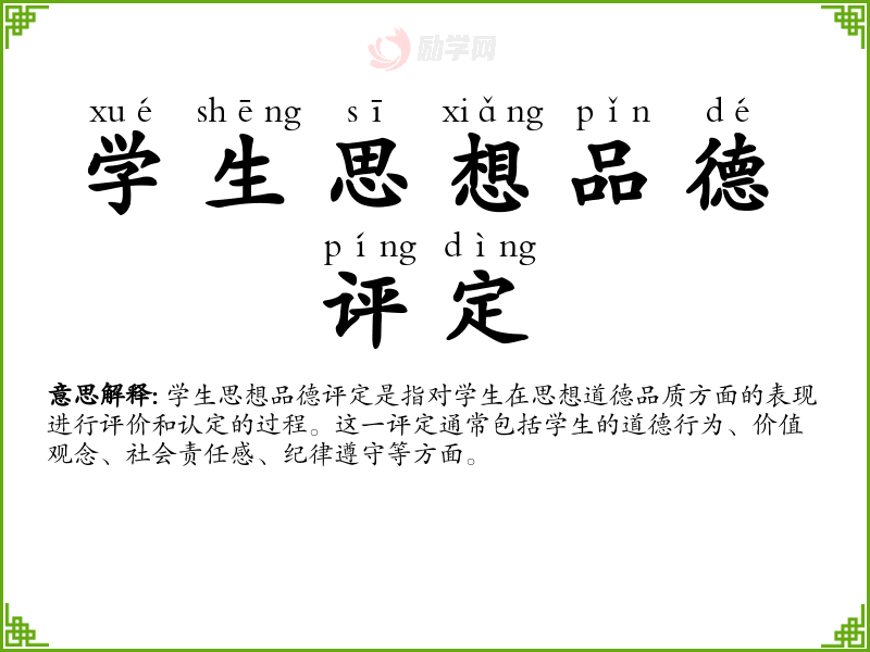 学生思想品德评定是指对学生在思想道德品质方面的表现进行评价和认定的过程。这一评定通常包括学生的道德行为、价值观念、社会责任感、纪律遵守等方面。