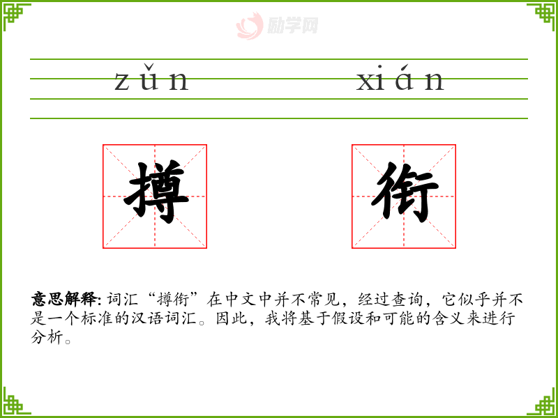 词汇“撙衔”在中文中并不常见,经过查询,它似乎并不是一个标准的汉语词汇。因此,我将基于假设和可能的含义来进行分析。