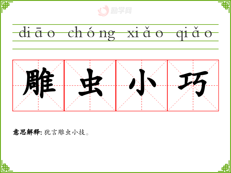 《说文》-巧,技也。 《墨子·贵义》-利于人,谓之巧。 《庄子·天道》-刻雕众形,而不为巧。 马融《长笛赋》-工人巧士。 明·魏学洢《核舟记》-明有奇巧人曰王叔远。