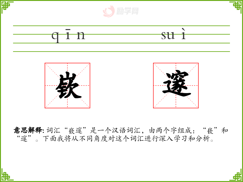 词汇“嵚邃”是一个汉语词汇,由两个字组成:“嵚”和“邃”。下面我将从不同角度对这个词汇进行深入学*和分析。