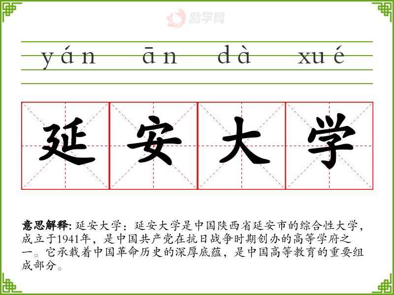 延安大学作为一个词汇,不仅代表了一所具体的大学,更承载了*革命历史和学术传统的深厚意义。在语言学和表达中,理解和运用这一词汇有助于深化对**现代史和教育文化的认识。