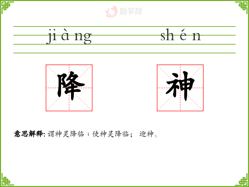 降神的意思是:谓神灵降临﹔使神灵降临; 迎神。