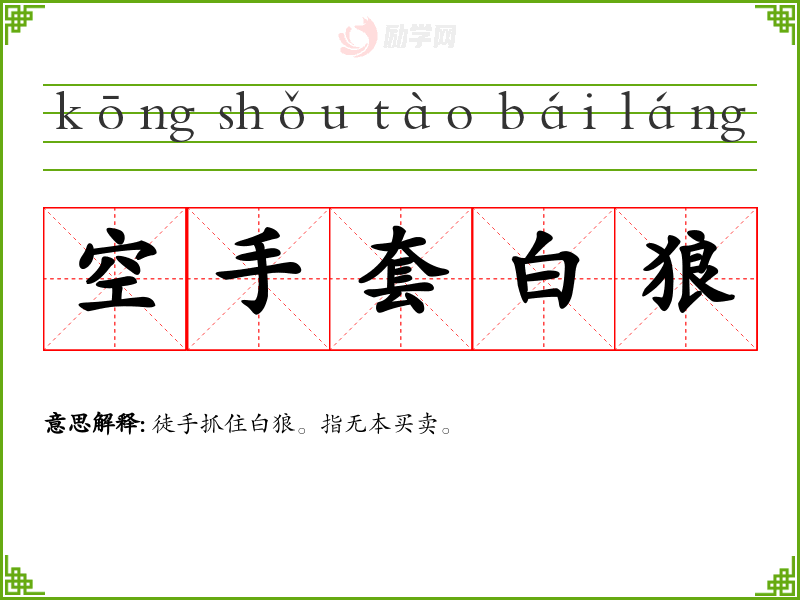 1.空手套白狼的拼音是什么?空手套白狼怎么读?