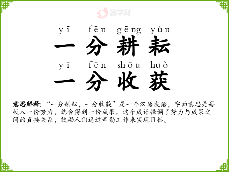 1.一分耕耘,一分收获的拼音是什么?一分耕耘,一分收获怎么读?