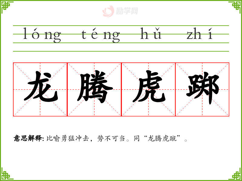(形声。从马,朕(zhèn)声。本义:马奔腾)。