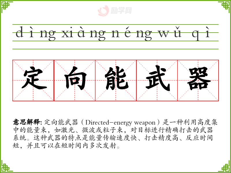 1.定向能武器的拼音是什么?定向能武器怎么读?