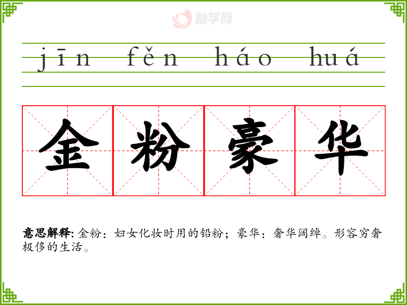 1.金粉豪华的拼音是什么?金粉豪华怎么读?