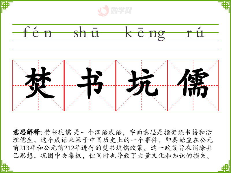 1.焚书坑儒的拼音是什么?焚书坑儒怎么读?