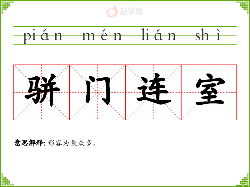 骈门连室的意思是:形容为数众多。