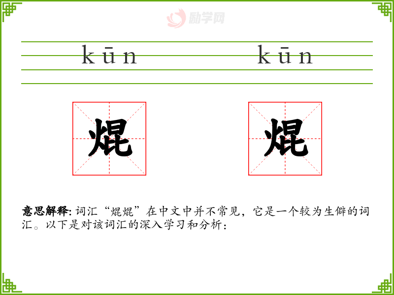 词汇“焜焜”在中文中并不常见,它是一个较为生僻的词汇。以下是对该词汇的深入学习和分析: