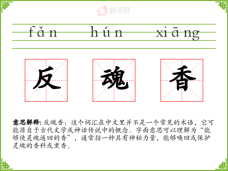 - 反义词:无(由于“反魂香”是一个较为特定的概念,没有直接的反义词)