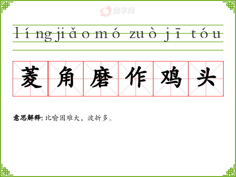 1.菱角磨作鸡头的拼音是什么?菱角磨作鸡头怎么读?