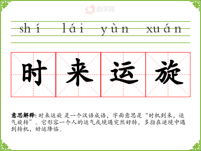 - 同义词:时来运转、时来运来、时来运至