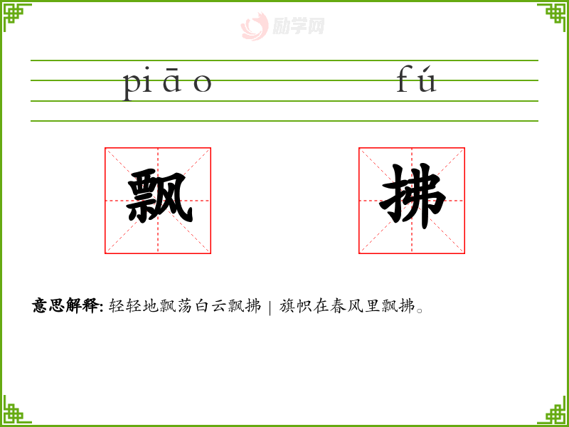 飘拂的意思是:轻轻地飘荡白云飘拂|旗帜在春风里飘拂。