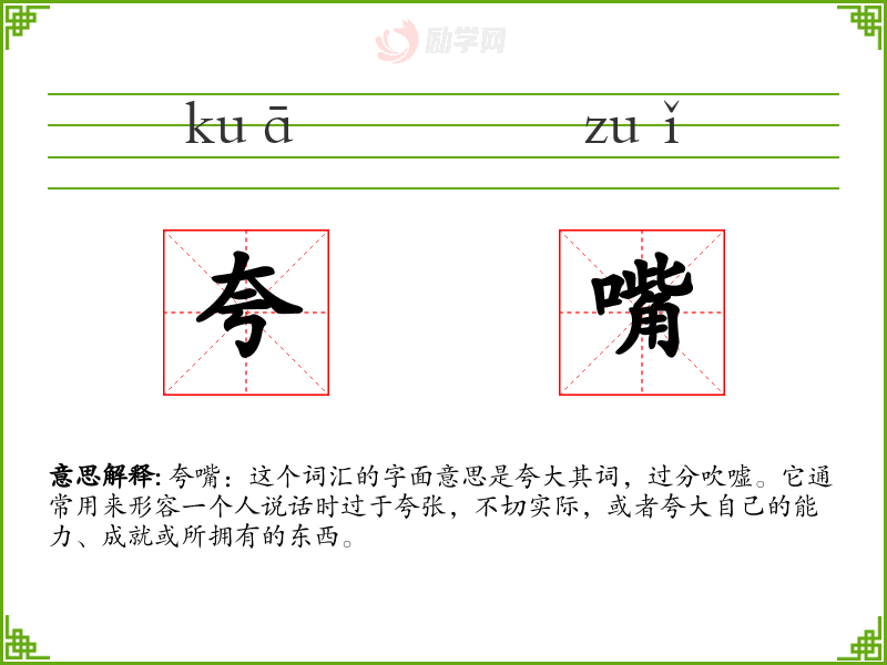 1.夸嘴的拼音是什么?夸嘴怎么读?