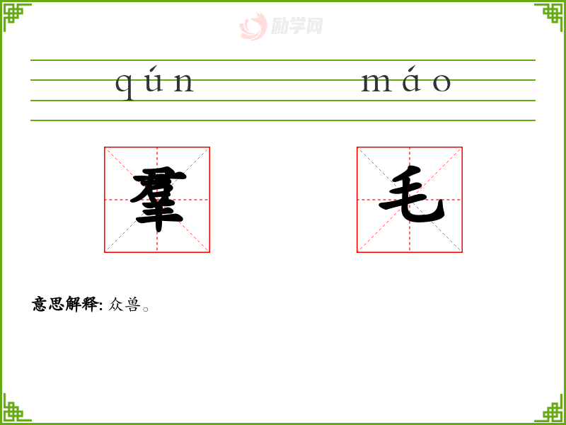 (象形。金文字形。“毛”是汉字的一个部首,从“毛”的字多与皮毛有关。本义:眉毛、头发、兽毛)。