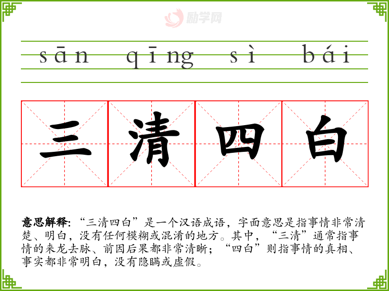 1.三清四白的拼音是什么?三清四白怎么读?