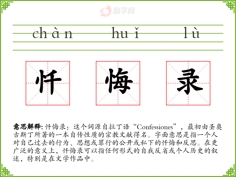 1.忏悔录的拼音是什么?忏悔录怎么读?
