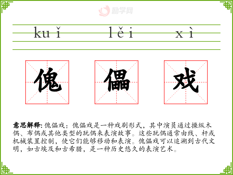 1.傀儡戏的拼音是什么?傀儡戏怎么读?