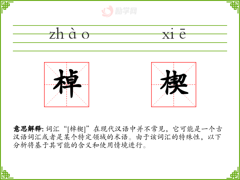 词汇“[棹楔]”在现代汉语中并不常见,它可能是一个古汉语词汇或者是某个特定领域的术语。由于该词汇的特殊性,以下分析将基于其可能的含义和使用情境进行。