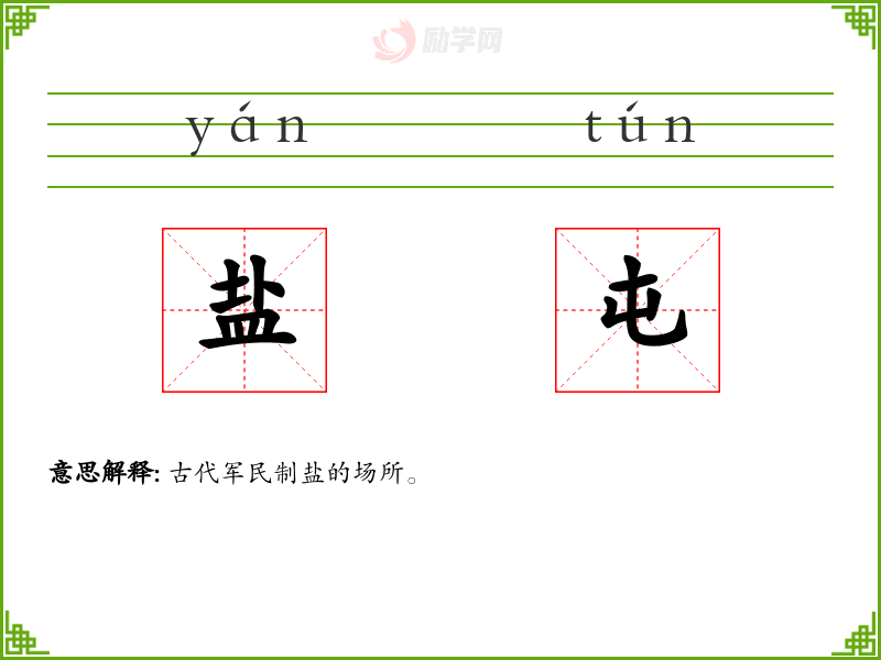 盐屯的意思是:古代军民制盐的场所。