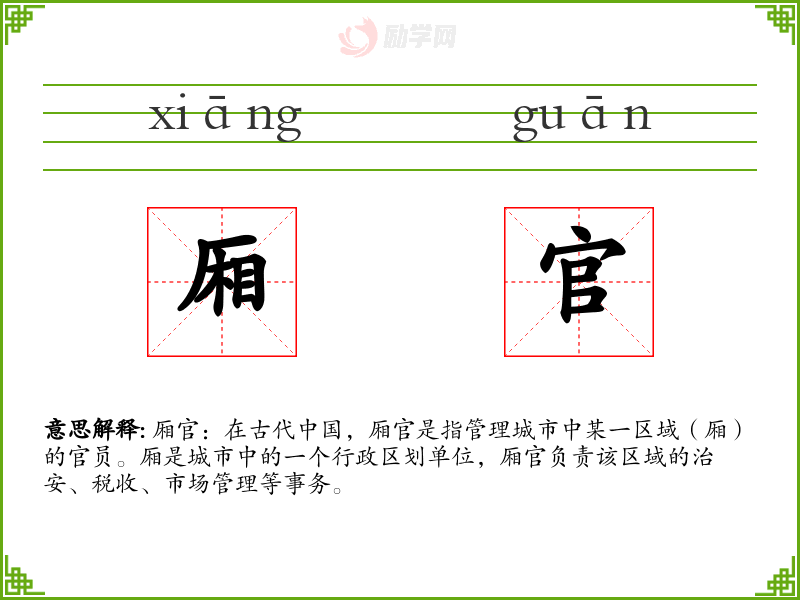 反思:厢官一词虽然在现代生活中较少使用,但通过对这一词汇的学,可以增强对历史文化的认识和尊重,对语言学和表达能力的提升也有积极作用。