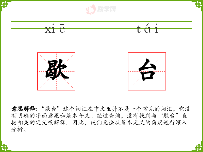 经过深入学习和分析,“歇台”这个词汇在中文中并不存在,因此无法进行进一步的探讨和分析。在语言学习和表达中,了解和掌握标准词汇是非常重要的,这有助于我们准确地表达思想和交流信息。
