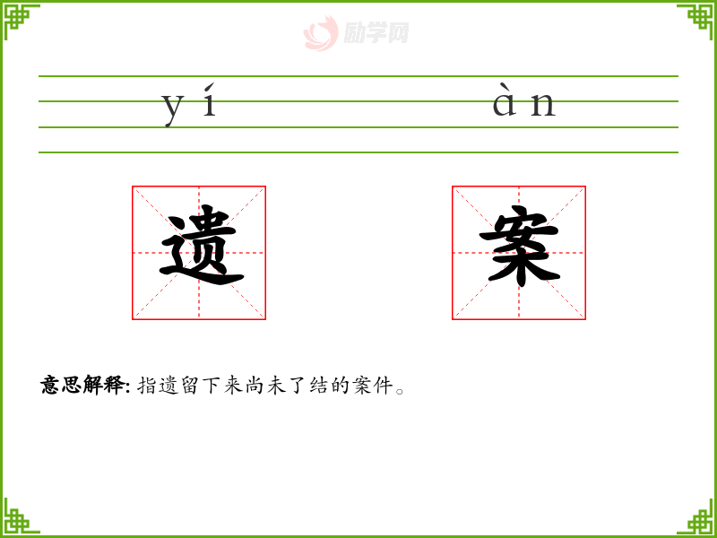 案[ àn ] 1. (形声。从木,安声。本义:木制的盛食物的矮脚托盘)。 2. 同本义。 【引证】 《史记·田叔列传》-赵王张敖自持案进食。 《后汉书·梁鸿传》-妻为具食,不敢于鸿前仰视,举案齐眉。 南朝宋·鲍照《拟行路难》-对案不能食,拔剑击柱长叹息。 【组词】 捧案;案杯 [更多解释]