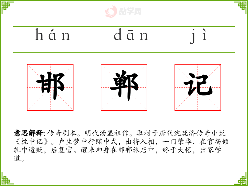 1.邯郸记的拼音是什么?邯郸记怎么读?