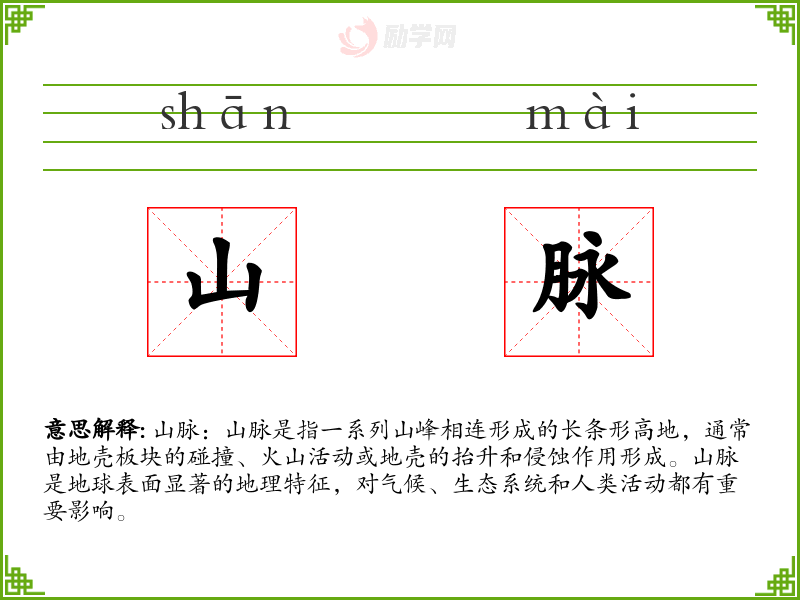 1.山脉的拼音是什么?山脉怎么读?