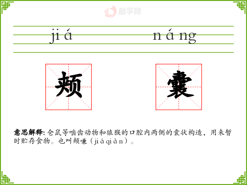 1.颊囊的拼音是什么?颊囊怎么读?