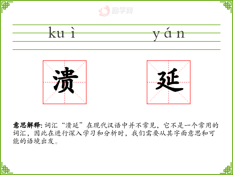 词汇“溃延”在现代汉语中并不常见,它不是一个常用的词汇,因此在进行深入学习和分析时,我们需要从其字面意思和可能的语境出发。