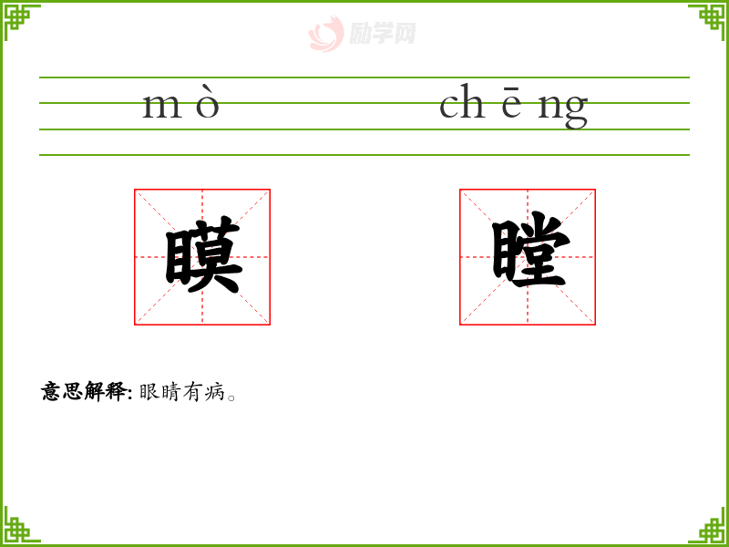 瞙[ mò ] 1. 目不明。 [更多解释]