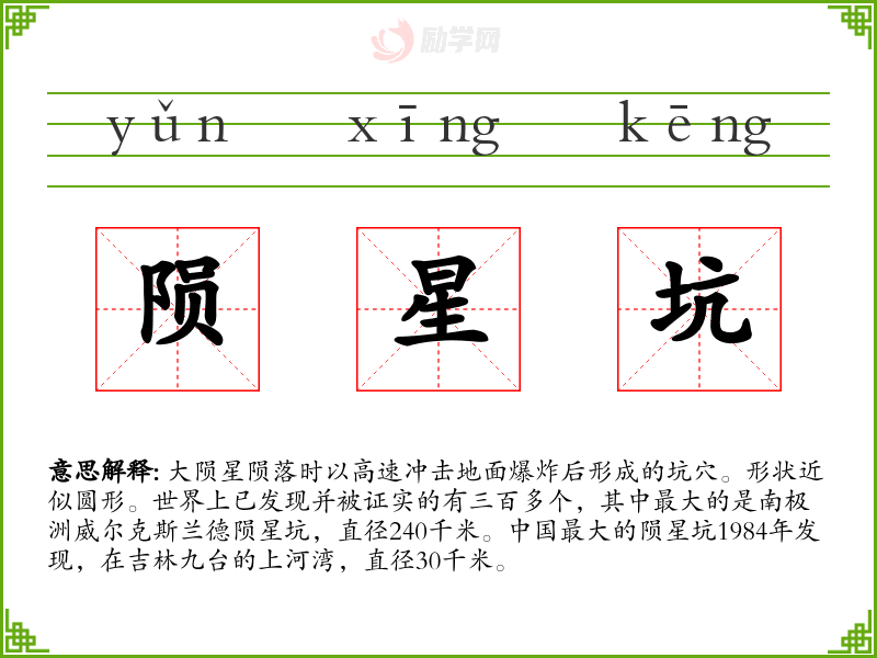 1.陨星坑的拼音是什么?陨星坑怎么读?