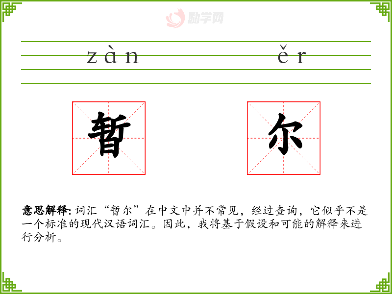 词汇“暂尔”在中文中并不常见,经过查询,它似乎不是一个标准的现代汉语词汇。因此,我将基于假设和可能的解释来进行分析。