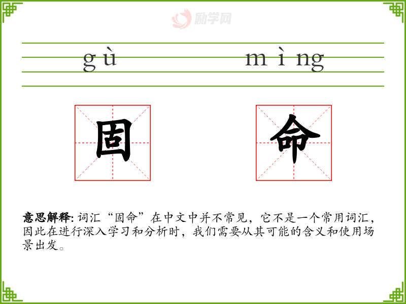 词汇“固命”在中文中并不常见,它不是一个常用词汇,因此在进行深入学*和分析时,我们需要从其可能的含义和使用场景出发。