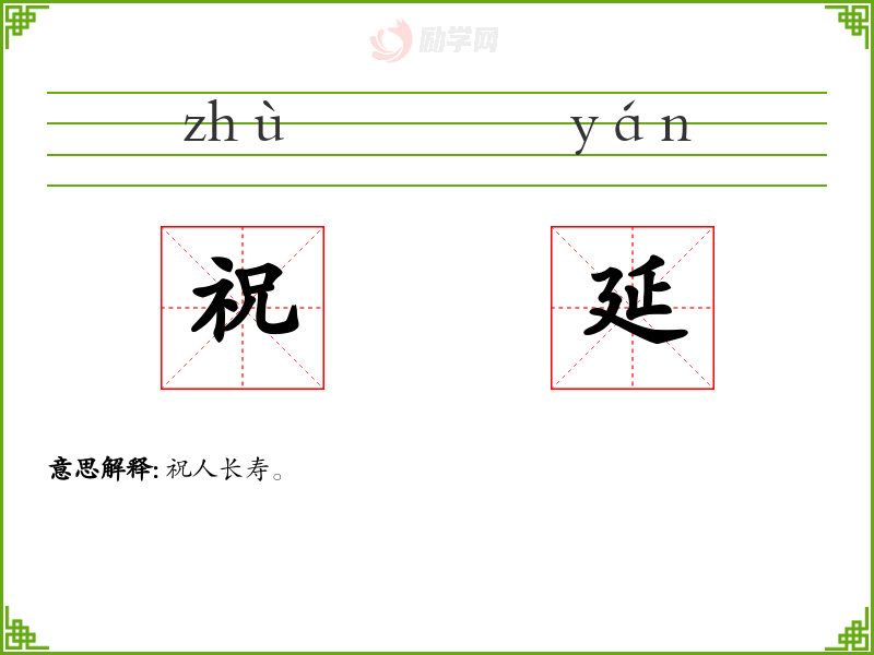 祝延的意思是:祝人长寿。