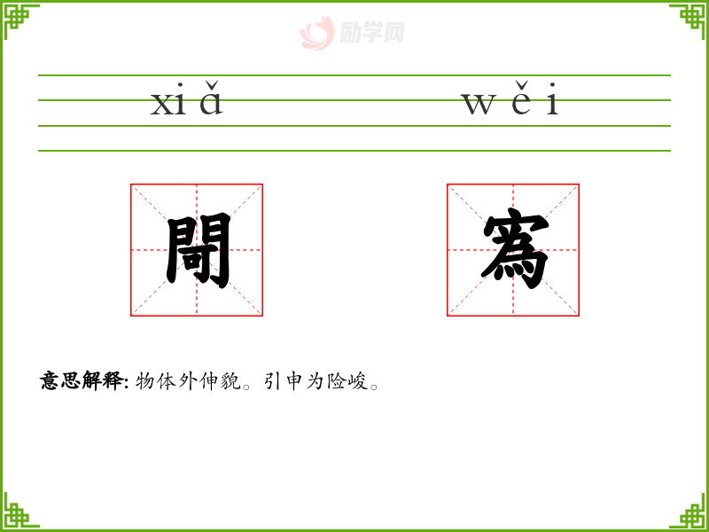 閜寪的意思是:物体外伸貌。引申为险峻。