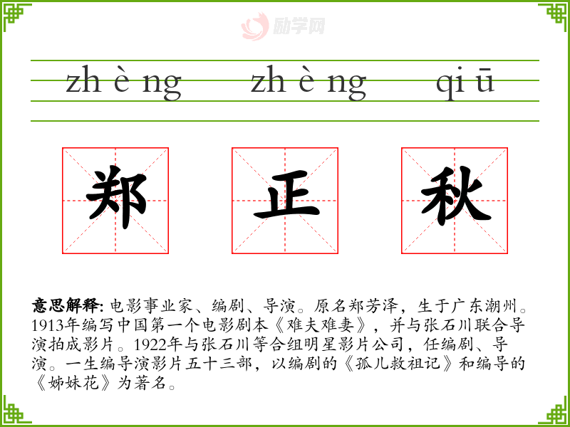 1.郑正秋的拼音是什么?郑正秋怎么读?
