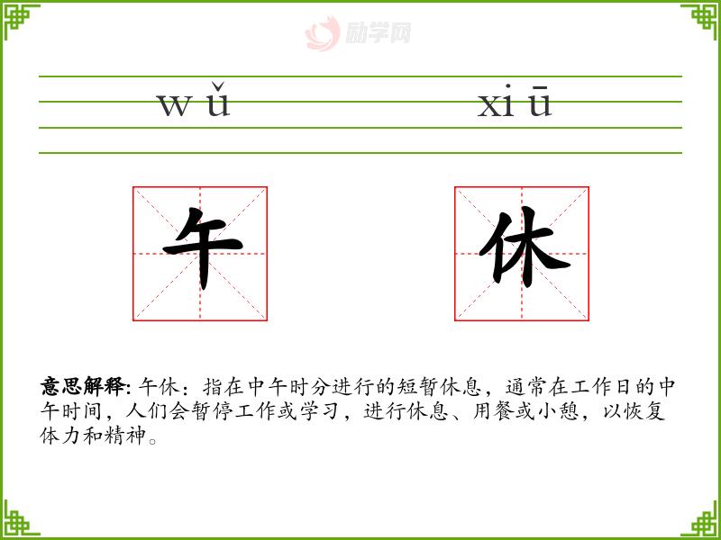 午休的拼音是:wǔ xiū