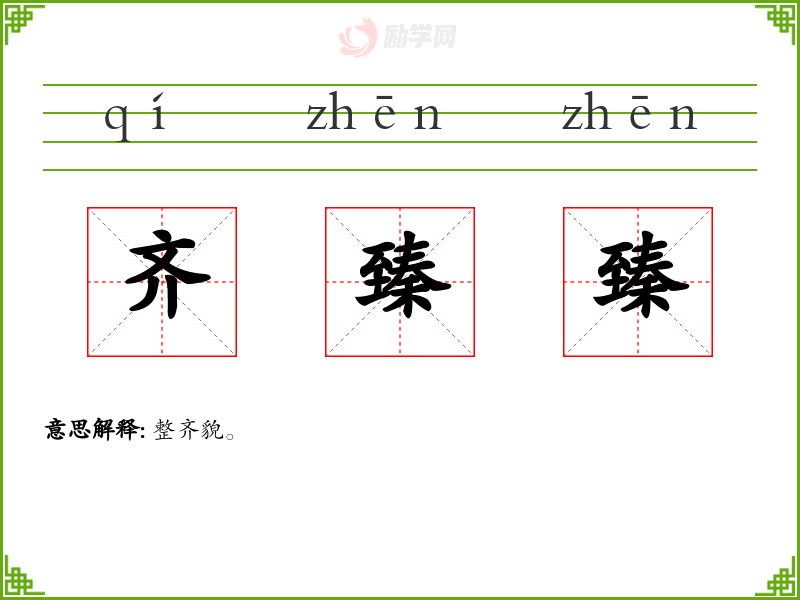 拼音 qí,jì,zī,zhāi 部首 齐 总笔画 6