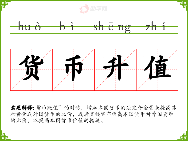 1.货币升值的拼音是什么?货币升值怎么读?